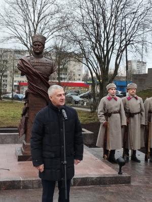 На открытии памятника выступил и заместитель В.Р. Мединского по РВИО (Российское военно-историческое общество) Овсиенко Н. П.